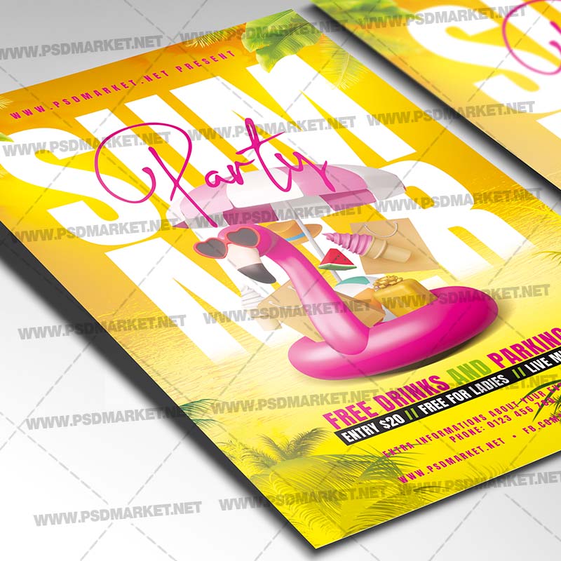 Summer Party Event Template Flyer PSD is a simply modern flyer design by PSDmarket Team to be used with Photoshop CS3 and higher. Save your time and use it for business or for your clients! This can be use for Summer Party Event, Summer Event, Pool Night, Pool Partyt, Pool Event, Summer Night Part, Summer Time, Summer Party, Summer Vibes, Summer Madness Party, Summer Night, Summer Time Party, Club Summer Party, Summer Dj Night, Summer Ibiza Party and others.