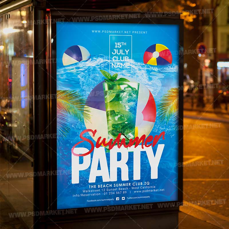 Summer Party Template Flyer PSD is a simply modern flyer design by PSDmarket Team to be used with Photoshop CS3 and higher. Save your time and use it for business or for your clients! This can be use for Pool Night, Pool Partyt, Pool Event, Summer Night Part, Summer Time, Summer Party, Summer Vibes, Summer Madness Party, Summer Night, Summer Time Party, Club Summer Party, Summer Dj Night, Summer Ibiza Party and others.