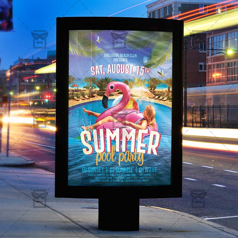 Summer Pool Party A5 Flyer Template for Adobe Photoshop