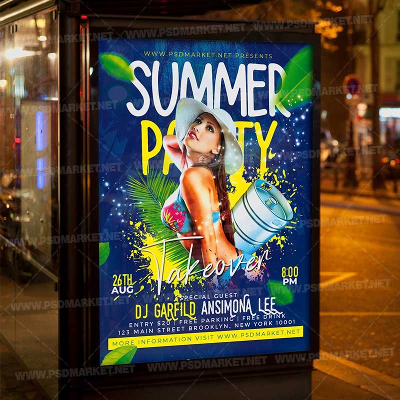 Summer Takeover PSD Template Flyer is a simply modern flyer design by PSDmarket Team to be used with Photoshop CS3 and higher. Save your time and use it for business or for your clients! This can be use for Summer Takeover, Summer Night, Summer Party, Tropical Party, Tropical Event, Tropical Party Night, Tropical Club Party, Tropical Night, River Party, Cruise Vacation Tour and others.