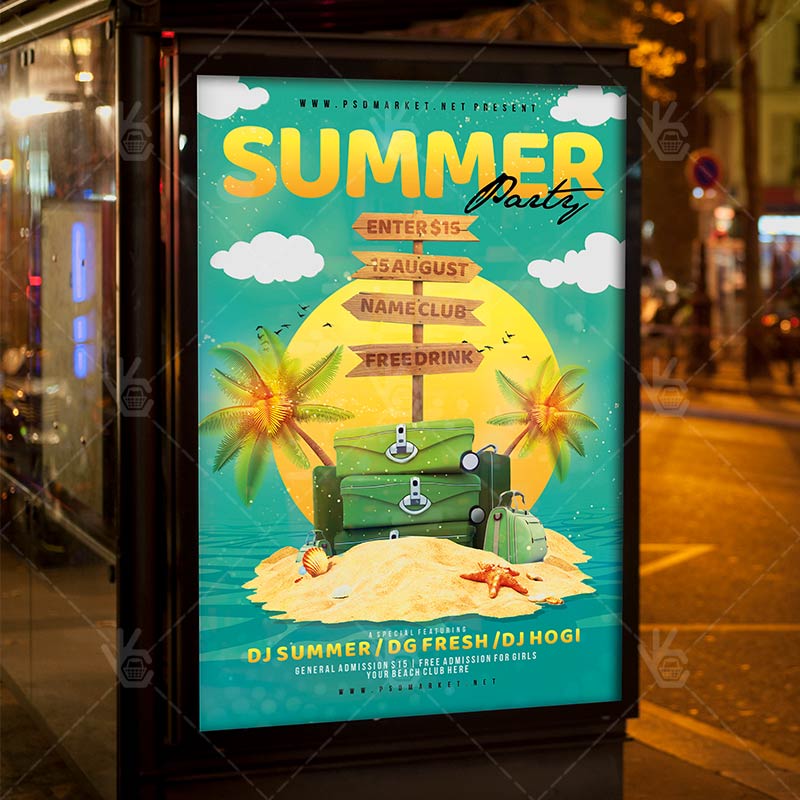 Summer Travel Party is a simply modern flyer design by PSDmarket Team to be used with Photoshop CS3 and higher. Save your time and use it for business or for your clients! This can be use for Tropical Summer Party, Beach or Summer Party , BBQ Summer Party, Beach Party, Techno Summer Party or Summer Night and others.