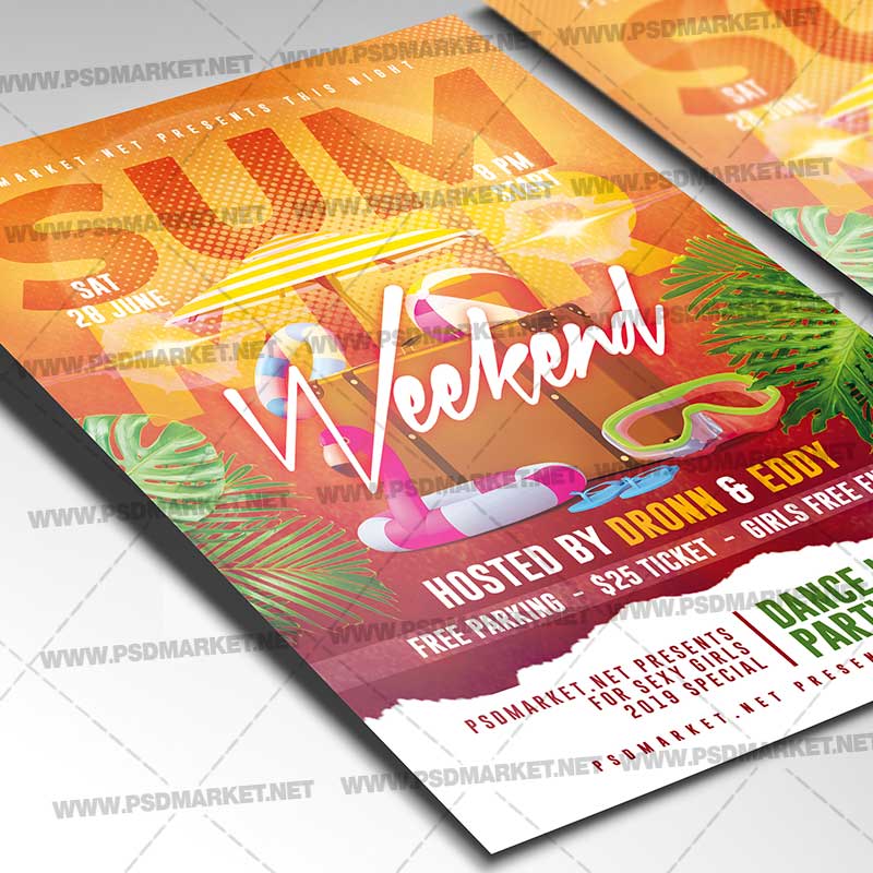 Summer Weekend Template Flyer PSD is a simply modern flyer design by PSDmarket Team to be used with Photoshop CS3 and higher. Save your time and use it for business or for your clients! This can be use for Summer Weekend, Summer Drinks, Summer Music, Bikini Party, Bikini Party Night, Summer Night Event, Summer Party Night, Summer Party Event, Summer Event, Pool Night, Pool Partyt, Pool Event, Summer Night Part, Summer Time, Summer Party, Summer Vibes, Summer Madness Party, Summer Night, Summer Time Party, Club Summer Party, Summer Dj Night, Summer Ibiza Party and others.