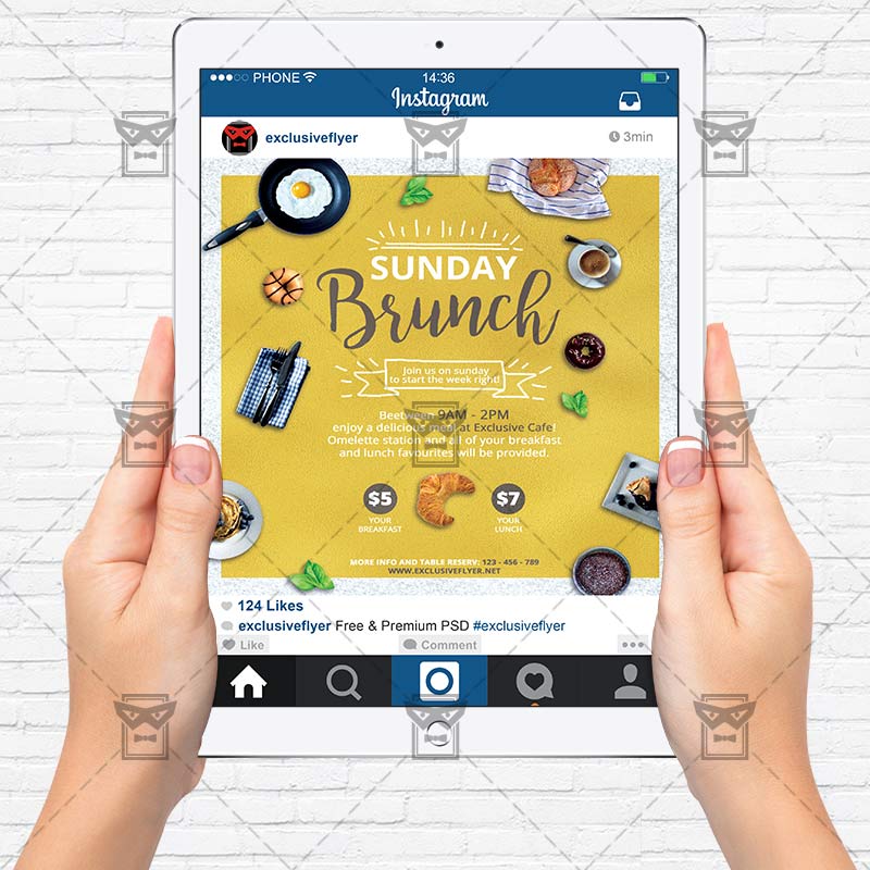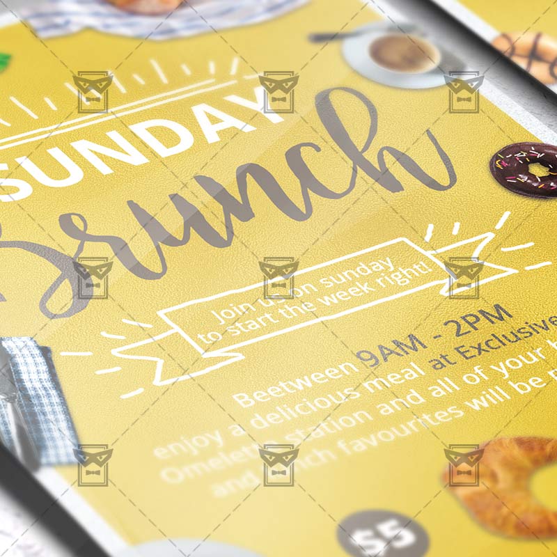 The Sunday Brunch is the exclusive Photoshop PSD flyer template designed by ExclusiveFlyer to promote your Sunday Brunch. This is a modern, stylish flyer and just be used for a Food Flyer, Happy Hours, Food Fest etc. Dear customers! – you can also: Customize any flyers or Hire Us to create any unique product. Also, you can get unlimited access to all our templates. You can buy 1 month membership, 3 or 6 months membership or even 1 year membership plan and login on site, choose a design, click the button DOWNLOAD TEMPLATE and it’s yours. No hassle, no checkout! When you paid the template, you can find it in your personal account and of course you’ve got a message to your e-mail (maybe in spam) with link to download. Also, you can find all templates, which you buy, in your personal account! All of our flyers have a very good quality (300DPI). And it means that you just need to download one of them and make the necessary modifications such as replace the elements or choose the colors and start to invite your guests! You can order from us design of Banner Ad, Bi-Fold Brochure, Tri-Fold Brochure, Business Card, Logo, One-Sided Flyer, Two-sided Flyer or Postcard. All you need is to checkout and write us all information on our e-mail or skype. (order now). There are a lot of free flyer templates, free business card templates on our site! Also there are a lot of categories of flyers such as club flyers, seasonal flyers, sport flyers and also business flyers. You have a great choise on our site, so good luck! Don’t forget to follow our Facebook community, our page on Twitter, on Pinterest and on Tumblr and leave comments, cause we work for you! PSD is set up in 1275×1875 dimension (4” x 6” with 0,25” bleed). The PSD file is very well organised, with color coded groups and layers named appropriately. Remember, all stock images of models and other people used only for demonstration all charms of the flyer and don’t included in the download!