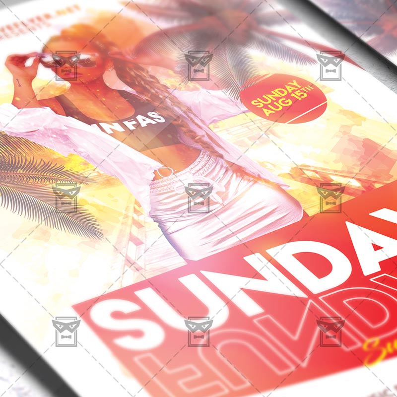 Sunday Funday is an exclusive PSD flyer template for Adobe Photoshop designed by our best graphic designers to facilitate your task in promoting your business. With our readymade Club flyer in psd format you can invite you customers and guest to your event or to the best Sunday Funday Party, Sunday Night, Best Party Night or Beach Night in their lives.