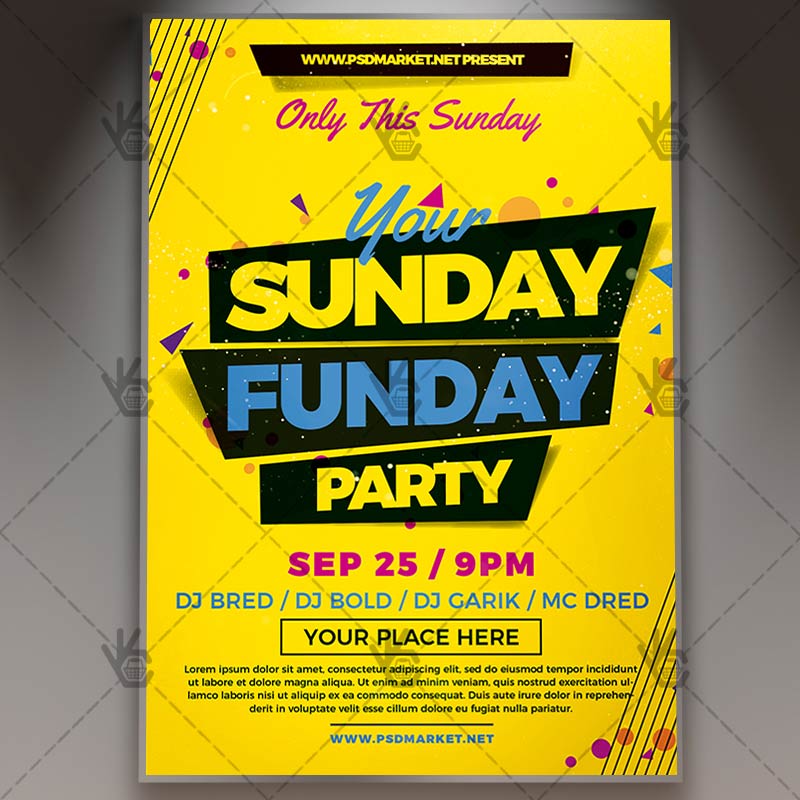 Sunday Funday Flyer is a simply modern flyer design by PSDmarket Team to be used with Photoshop CS3 and higher. Save your time and use it for business or for your clients! This can be use for Sunday Funday, Sunday Funday Night, Sunday Funday Party, Funday Party, Funday Night, Sunday Funday Festival, Sunday Funday Party Night, Sunday Funday Event and others.