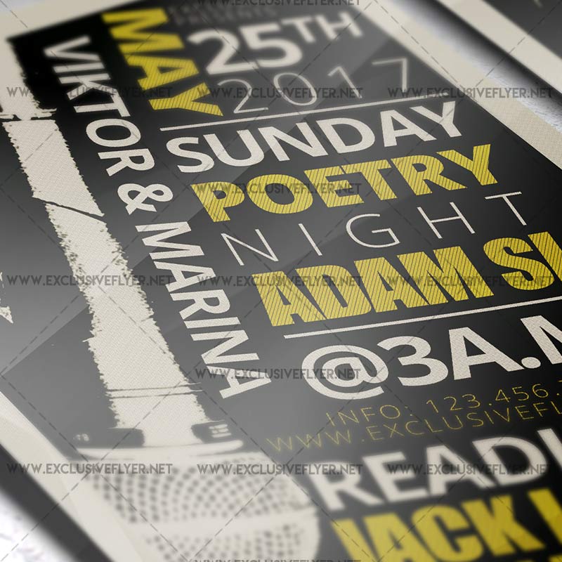 This Sunday Poetry Night Flyer is the exclusive Photoshop PSD template designed by ExclusiveFlyer team to promote your Poetry Nights.