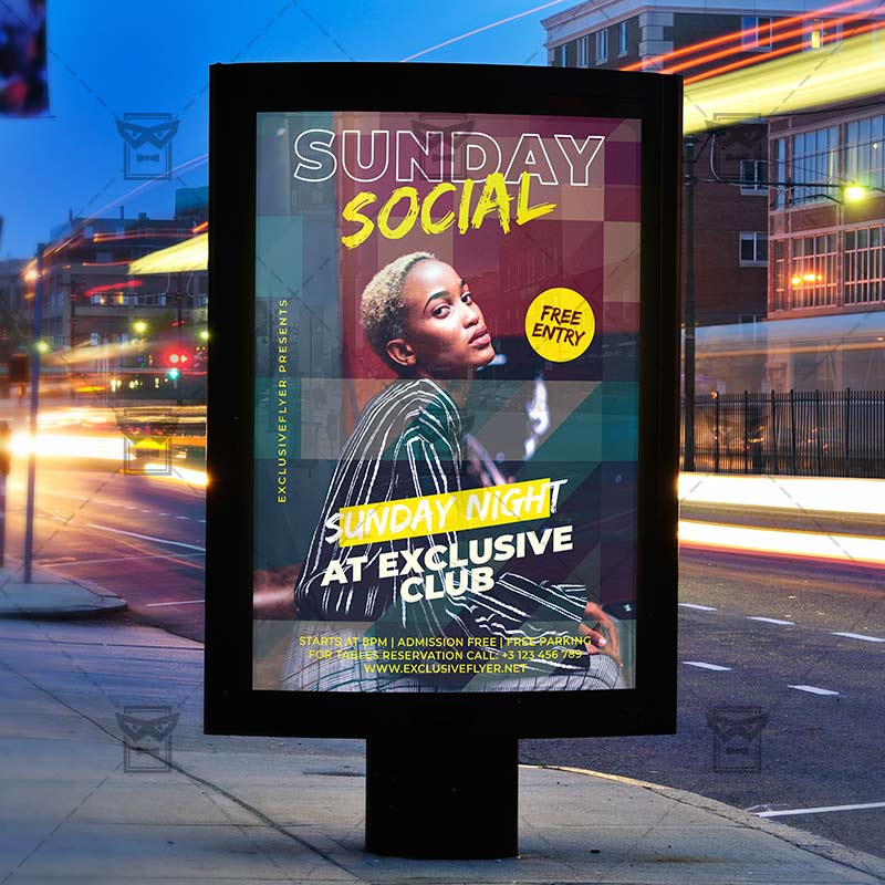 Sunday Social Template an exclusive PSD flyer template for Adobe Photoshop designed by our best graphic designers to facilitate your task in promoting your business. With our readymade Club flyer in psd format you can invite you customers and guest to your event or to the best Social Friday Party, Sunday Night, Club Party, Social Fridays or Social Wednesday Night in their lives.