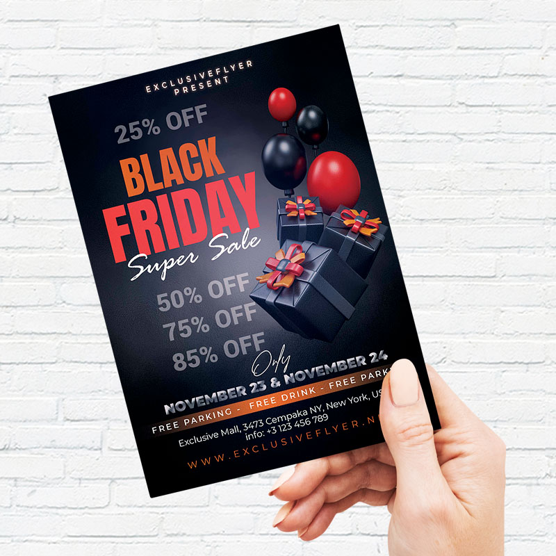 Super Sale Template an exclusive PSD flyer template for Adobe Photoshop designed by our best graphic designers to facilitate your task in promoting your business. This psd poster/flyer is the best choice for Black Friday Sale, Cyber Monday Sale, Pre Sale, Black Friday Discount. With our readymade Super Sale flyer in psd format you can invite you customers and guest to your event with a minimum of efforts and time.