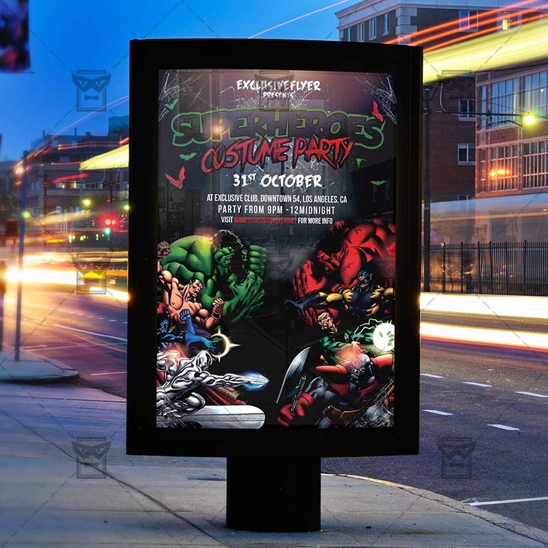 The Superheroes Costume Party is the exclusive Photoshop PSD flyer template designed by ExclusiveFlyer to promote your Superheroes Costume Party. This is a modern, stylish flyer and just be used for Halloween Night, Trick or Trit Party, Scarry Party, Bloody Night etc.