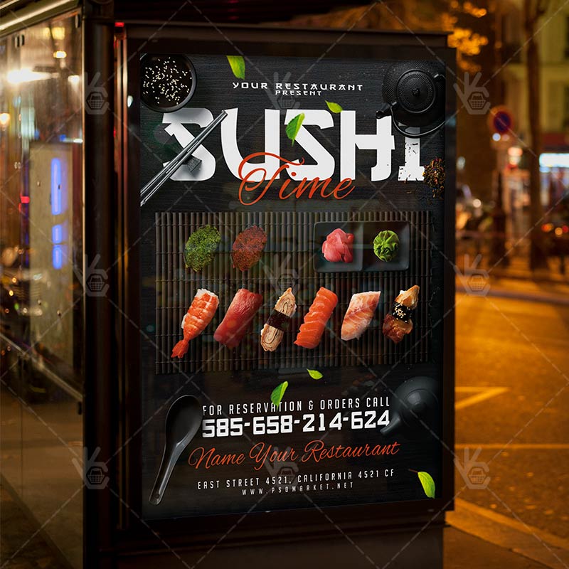 Sushi Flyer is a simply modern flyer design by PSDmarket Team to be used with Photoshop CS3 and higher. Save your time and use it for business or for your clients! This can be use for Sushi, Sushi Party, Sushi Time, Sushi Promotion, Japanese Sushi, Sushi Restaurant, Sushi Delivery or Sushi Event and others.