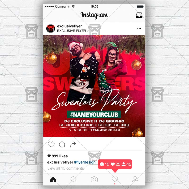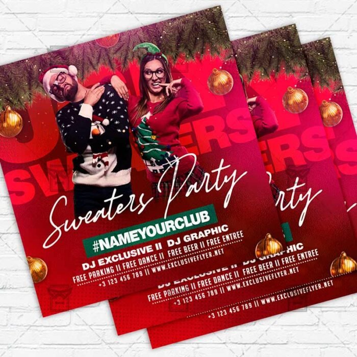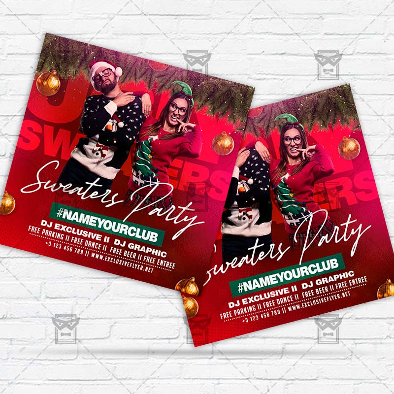 Sweaters Party Template an exclusive PSD flyer template for Adobe Photoshop designed by our best graphic designers to facilitate your task in promoting your business. With our readymade Club flyer in psd format you can invite you customers and guest to your event or to the best Christmas Celebration, Christmas Party, Merry Christmas, Winter Wonderland, Christmas Vacation, Christmas Market, Christmas Menu, Xmas Menu Set, New Year Menu in their lives.