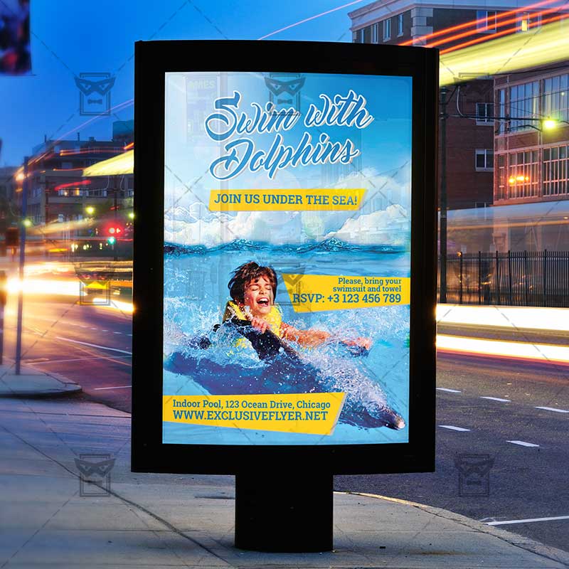 The Swim with Dolphins is the exclusive Photoshop PSD flyer template designed by ExclusiveFlyer to promote your Swimming with Dolphins. This is a modern, stylish flyer and just be used for Dolphins Show, Dolphinarium, Swim with Dolphins Show etc.
