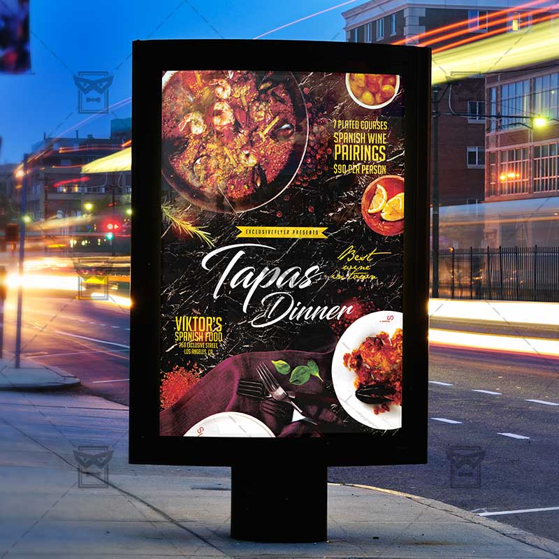 Tapas Dinner is an exclusive PSD flyer template for Adobe Photoshop designed by our best graphic designers to facilitate your task in promoting your business. With our readymade Food flyer in psd format you can invite you customers and guest to your event or to the best Tapas and Wine Dinner, Tapas Dinner, Wine Dinner or Food Event in their lives.