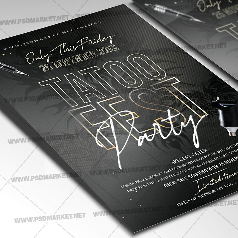 Tattoo Fest Party Flyer is a simply modern flyer design by PSDmarket Team to be used with Photoshop CS3 and higher. Save your time and use it for business or for your clients! This can be use for Tattoo Fest Party, Tattoo Fest, Tattoo, Tattoo Festival Party, Tattoo Festival Night, Tattoo Fest, Tattoo Promotion, Tattoo Studio, Tattoo Master or Ink Party and others.