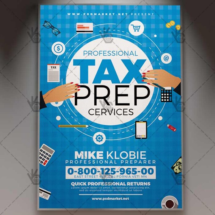 Tax Preparer Flyer is a simply modern flyer design by PSDmarket Team to be used with Photoshop CS3 and higher. Save your time and use it for business or for your clients! This can be use for Tax Preparer, Tax Prep, Income Tax, Tax Refund, Tax Service, Tax Time, Tax or Tax Event and others.