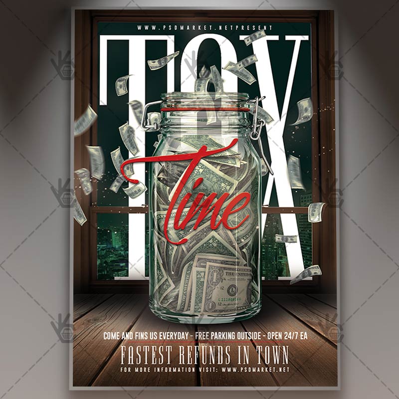 Tax Time Flyer is a simply modern flyer design by PSDmarket Team to be used with Photoshop CS3 and higher. Save your time and use it for business or for your clients! This can be use for Tax Time, Career, Tax, Tax Day, Tax Preparer, Tax Prep, Income Tax, Tax Refund, Tax Service, Tax Services or Tax Event and others.