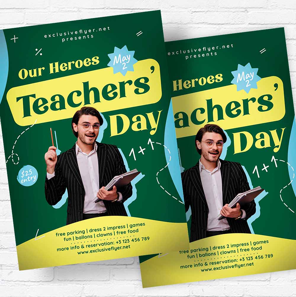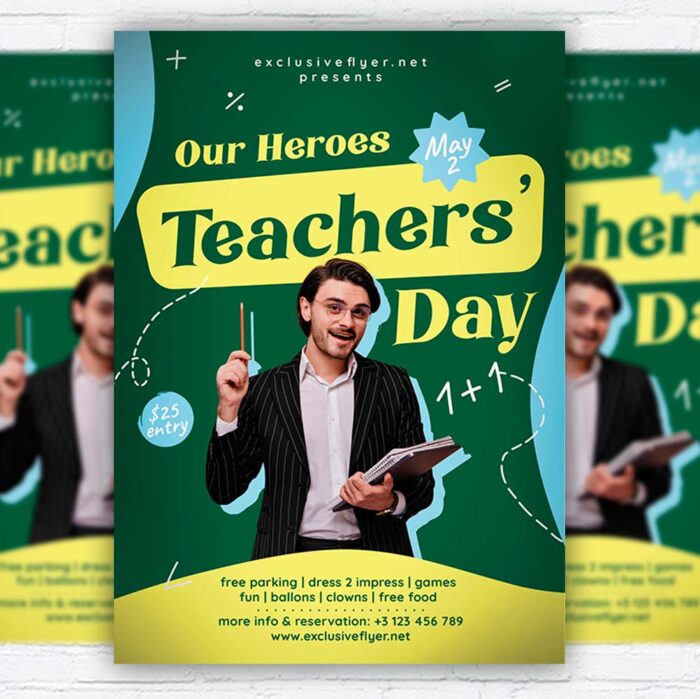 Teachers’ Day Party is an exclusive PSD flyer template for Adobe Photoshop designed by our best graphic designers to facilitate your task in promoting your business. This psd poster/flyer is the best choice for Teachers’ Day Celebration, Teachers’ Day Event, Teachers’ Day Bash, Teachers’ Day Party, Teachers’ Party Out. With our readymade Teachers’ Day Party PSD Template flyer in psd format, you can invite your customers and guests to your event with a minimum of effort and time.