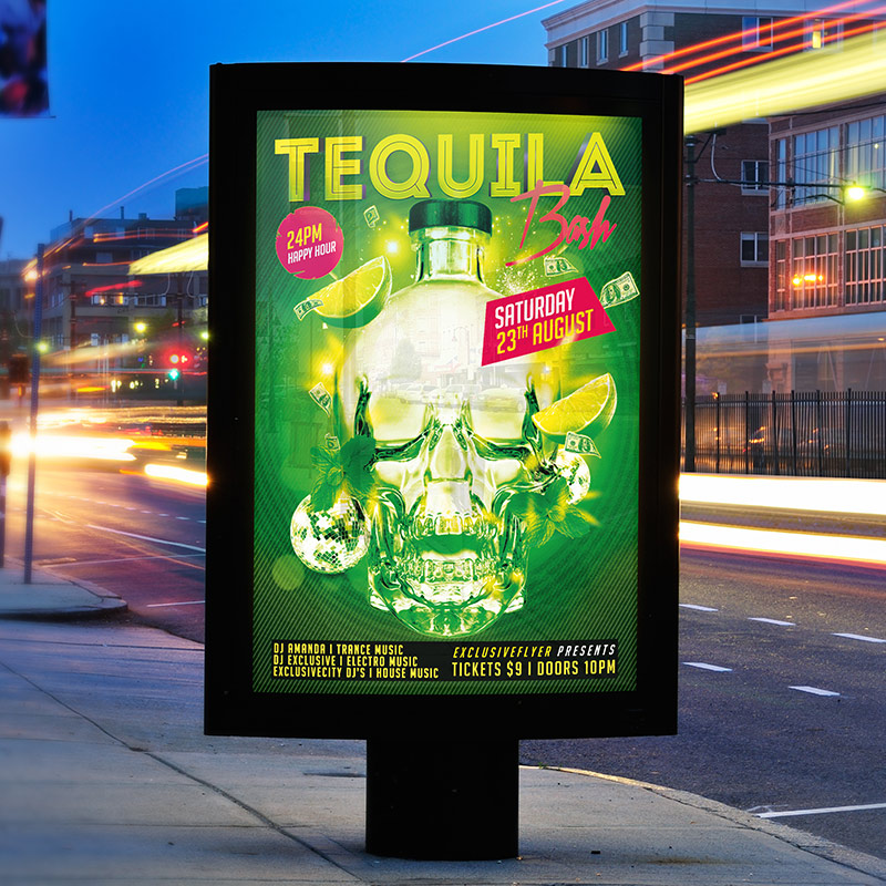 The Tequila Bash is the exclusive Photoshop PSD flyer/poster template designed by ExclusiveFlyer to promote your Tequila Bash. This is a modern, stylish, orange flyer and just be used for a Cinco de Mayo or Mexican Independence Day. Dear customers! – you can also: Customize any flyers or Hire Us to create any unique product. Also, you can get unlimited access to all our templates. You can buy 1 month membership, 3 or 6 months membership or even 1 year membership plan and login on site, choose a design, click the button DOWNLOAD TEMPLATE and it’s yours. No hassle, no checkout! When you paid the template, you can find it in your personal account and of course you’ve got a message to your e-mail (maybe in spam) with link to download. Also, you can find all templates, which you buy, in your personal account! All of our flyers have a very good quality (300DPI). And it means that you just need to download one of them and make the necessary modifications such as replace the elements or choose the colors and start to invite your guests! You can order from us design of Banner Ad, Bi-Fold Brochure, Tri-Fold Brochure, Business Card, Logo, One-Sided Flyer, Two-sided Flyer or Postcard. All you need is to checkout and write us all information on our e-mail or skype. (order now). There are a lot of free flyer templates, free business card templates on our site! Also there are a lot of categories of flyers such as club flyers, seasonal flyers, sport flyers and also business flyers. You have a great choise on our site, so good luck! Don’t forget to follow our Facebook community, our page on Twitter, on Pinterest and on Tumblr and leave comments, cause we work for you! PSD is set up in 1275×1875 dimension (4″×6″ with 0,25″ bleed). The PSD file is very well organised, with color coded groups and layers named appropriately. Remember, all stock images of models and other people used only for demonstration all charms of the flyer and don’t included in the download!