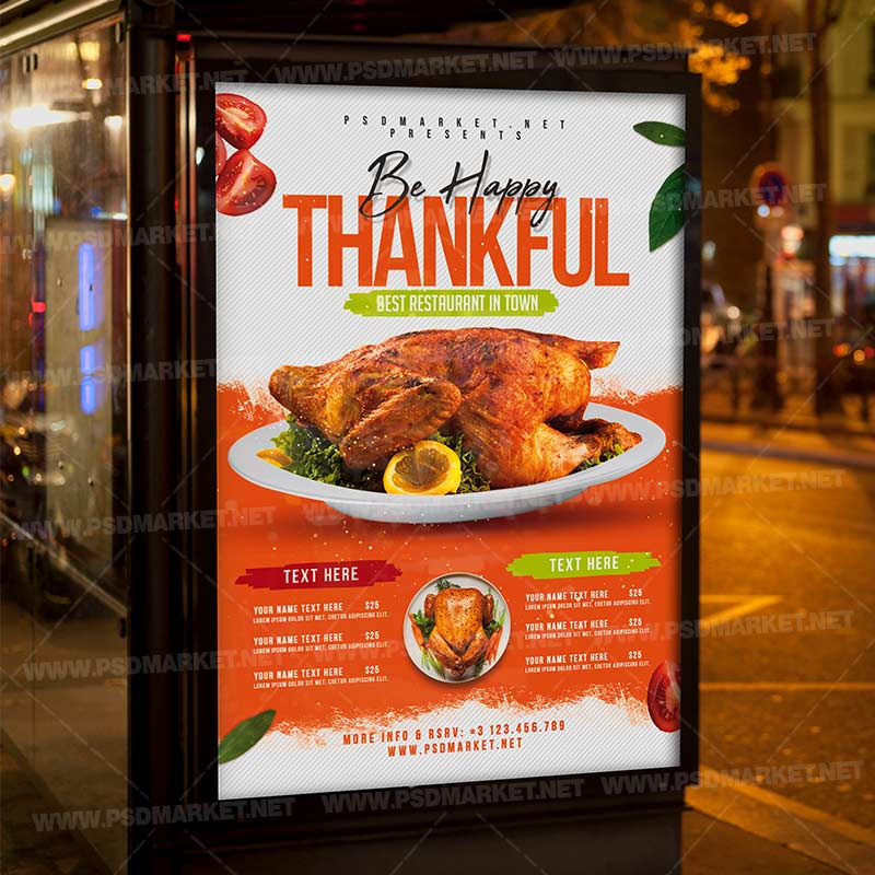 Thankful Dinner Template Flyer PSD for Adobe Photoshop