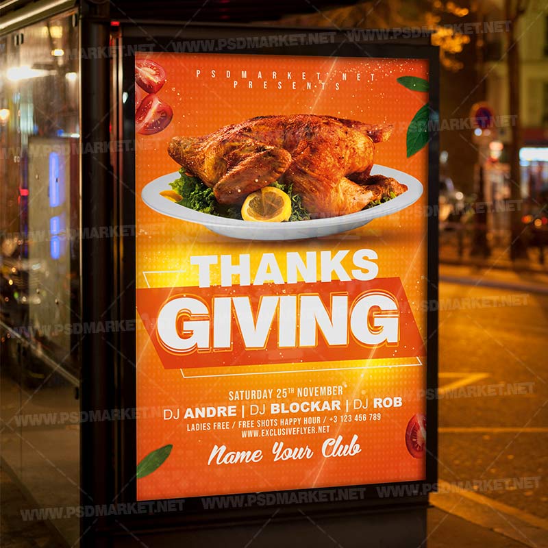Thanks Giving Party Template Flyer PSD for Adobe Photoshop