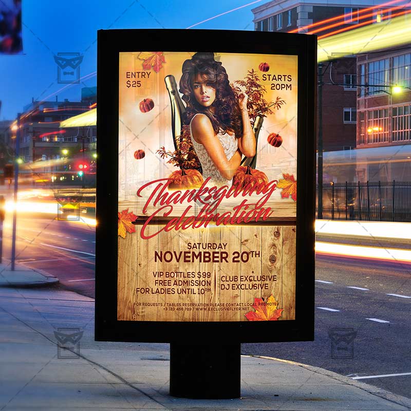Thanksgiving Celebration is an exclusive PSD flyer template for Adobe Photoshop designed by our best graphic designers to facilitate your task in promoting your business. With our readymade Thanksgiving flyer in psd format you can invite you customers and guest to your event or to the best Thanksgiving Party, Thanksgiving Night, Harvest November Party or Autumn Night in their lives.