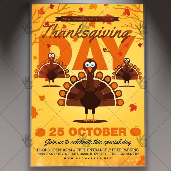 Thanksgiving Day is a simply modern flyer design by PSDmarket Team to be used with Photoshop CS3 and higher. Save your time and use it for business or for your clients! This can be use for Happy Thanksgiving Day, Thanksgiving Fest, Thanksgiving Party, Thanksgiving Night, Thanksgiving Celebration or Thanksgiving Festival and others.