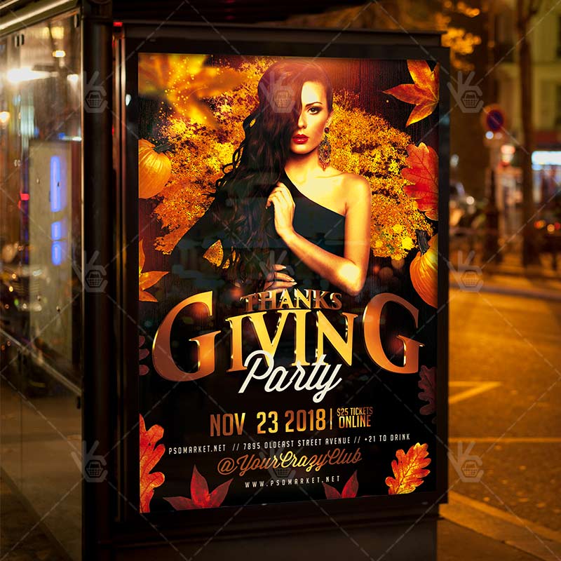 Thanksgiving Party Night – Autumn Flyer PSD Template