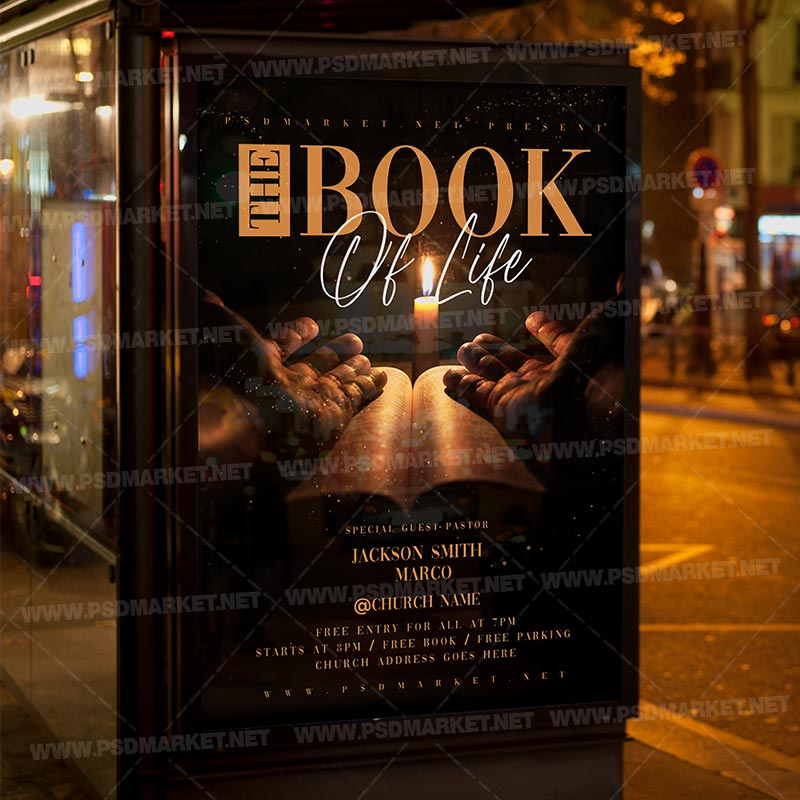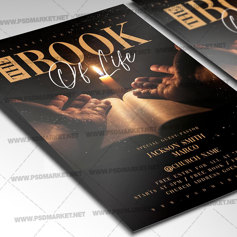 The Book Of Life Template Flyer PSD is a simply modern flyer design by PSDmarket Team to be used with Photoshop CS3 and higher. Save your time and use it for business or for your clients! This can be use for The Book Of Life, Church Event, Worship Event, Church Service, Pray for the Earth or Praying Service and others.