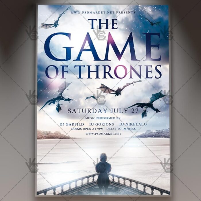 The Game Of Thrones is a simply modern flyer design by PSDmarket Team to be used with Photoshop CS3 and higher. Save your time and use it for business or for your clients! This can be use for Game Of Thrones Festival, Game Of Thrones Party, Game Of Thrones Night, Game Party, King Party, Thrones Night and others.