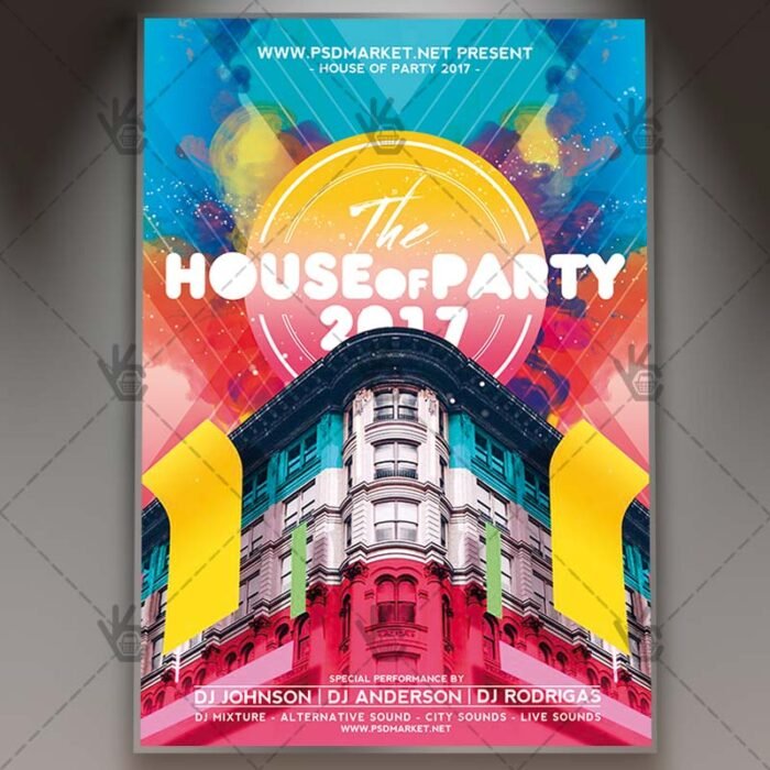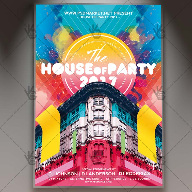 The House of Party is a simply modern flyer design by PSDmarket Team to be used with Photoshop CS3 and higher. Save your time and use it for business or for your clients! This can be use for RAP Trash, Electro House Party, RAP Festival, 90s Party, House Night and others.