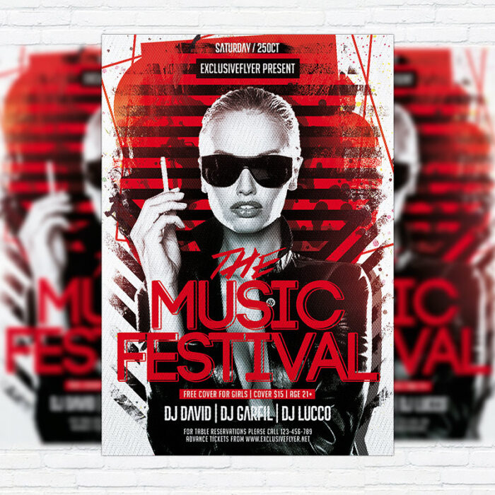The The Music Festival is the exclusive Photoshop PSD flyer template designed by ExclusiveFlyer to promote your The Music Festival Party. This is a modern, stylish, music flyer and just be used for a Concert Music Festival or Music Tournament or Music Party etc. Dear customers! – you can also: Customize any flyers or Hire Us to create any unique product. Also, you can get unlimited access to all our templates. You can buy 1 month membership, 3 or 6 months membership or even 1 year membership plan and login on site, choose a design, click the button DOWNLOAD TEMPLATE and it’s yours. No hassle, no checkout! When you paid the template, you can find it in your personal account and of course you’ve got a message to your e-mail (maybe in spam) with link to download. Also, you can find all templates, which you buy, in your personal account! All of our flyers have a very good quality (300DPI). And it means that you just need to download one of them and make the necessary modifications such as replace the elements or choose the colors and start to invite your guests! You can order from us design of Banner Ad, Bi-Fold Brochure, Tri-Fold Brochure, Business Card, Logo, One-Sided Flyer, Two-sided Flyer or Postcard. All you need is to checkout and write us all information on our e-mail or skype. (order now). There are a lot of free flyer templates, free business card templates on our site! Also there are a lot of categories of flyers such as club flyers, seasonal flyers, sport flyers and also business flyers. You have a great choise on our site, so good luck! Don’t forget to follow our Facebook community, our page on Twitter, on Pinterest and on Tumblr and leave comments, cause we work for you! PSD is set up in 1275×1875 dimension (4″×6″ with 0,25″ bleed). The PSD file is very well organised, with color coded groups and layers named appropriately. Remember, all stock images of models and other people used only for demonstration all charms of the flyer and don’t included in the download!