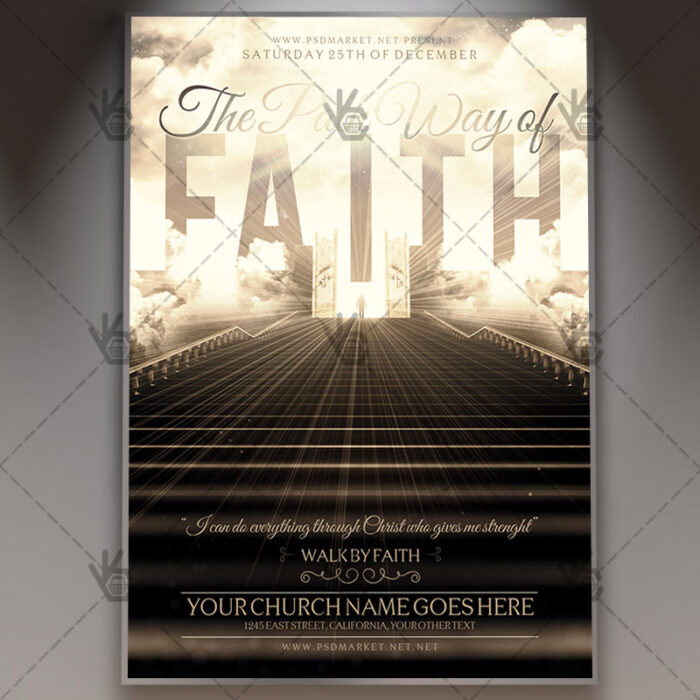 The Pathway of Faith Flyer Template is a premium Photoshop PSD flyer / poster template designed by PSDmarket to be used with Photoshop CS4 and higher.