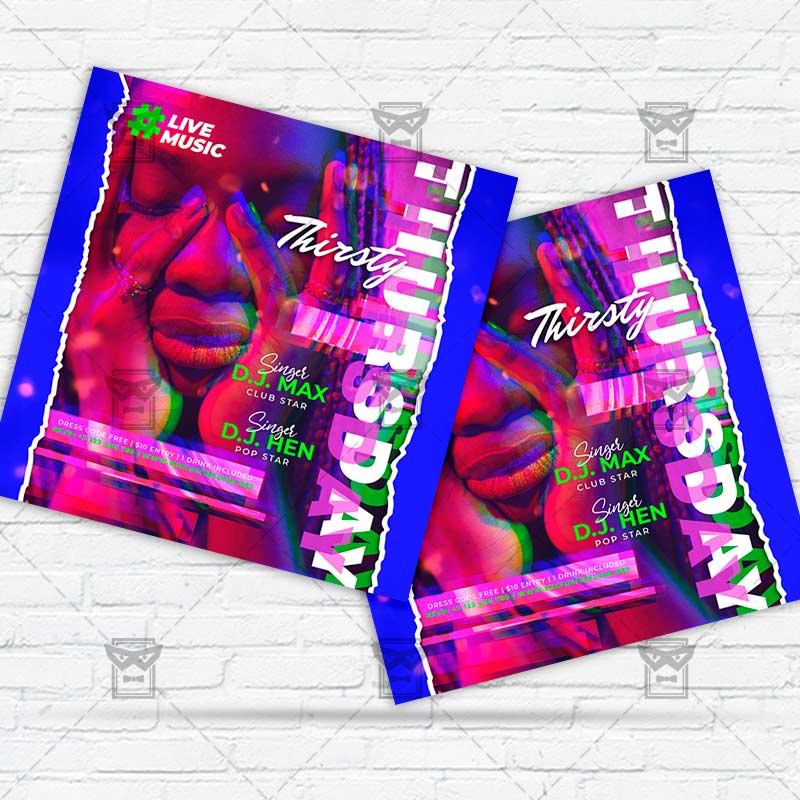 Thirsty Thursdays Template an exclusive PSD flyer template for Adobe Photoshop designed by our best graphic designers to facilitate your task in promoting your business. With our readymade Club flyer in psd format you can invite you customers and guest to your event or to the best Party Club, Girls Night, Party Online, Girls Night Out Party, Live Show Night, Online Show. Online Dj Battle, Online Party On in their lives.