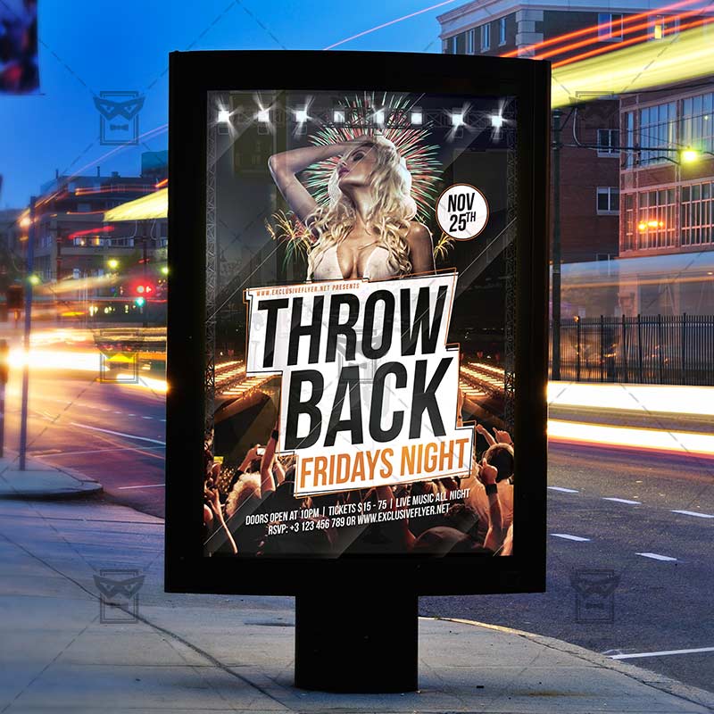 The Throwback Fridays is the exclusive Photoshop PSD flyer template designed by ExclusiveFlyer to promote your Throwback Fridays Party. This is a modern, stylish flyer and just be used for Throwback Nights, Music Party Night, Club Night etc.
