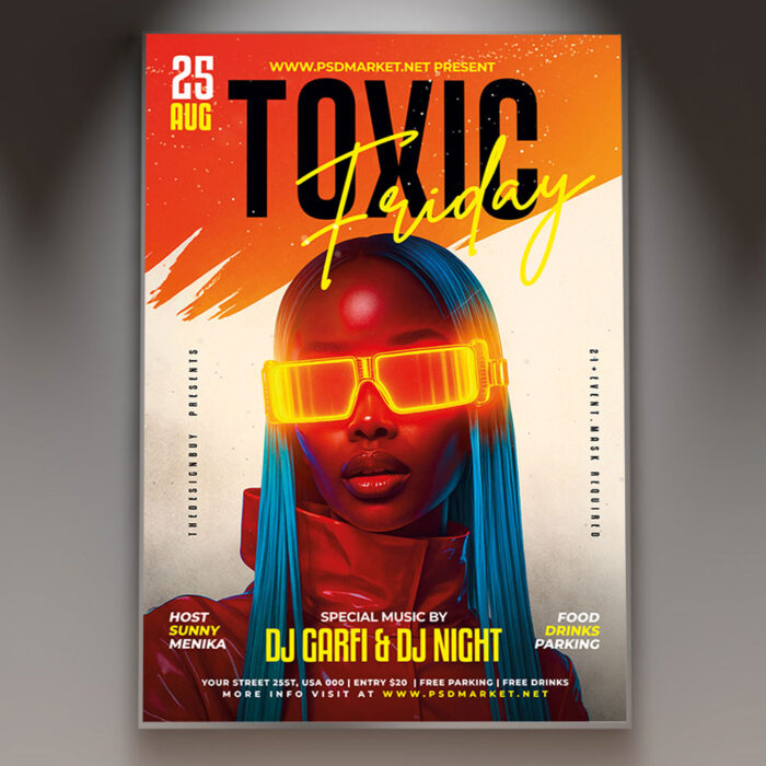 Get Your Toxic Friday Flyer Template Today!Start promoting your next thrilling “Toxic Friday” now with our unique and captivating flyer template. Download it today and get ready to create an unforgettable night of edgy fun! |