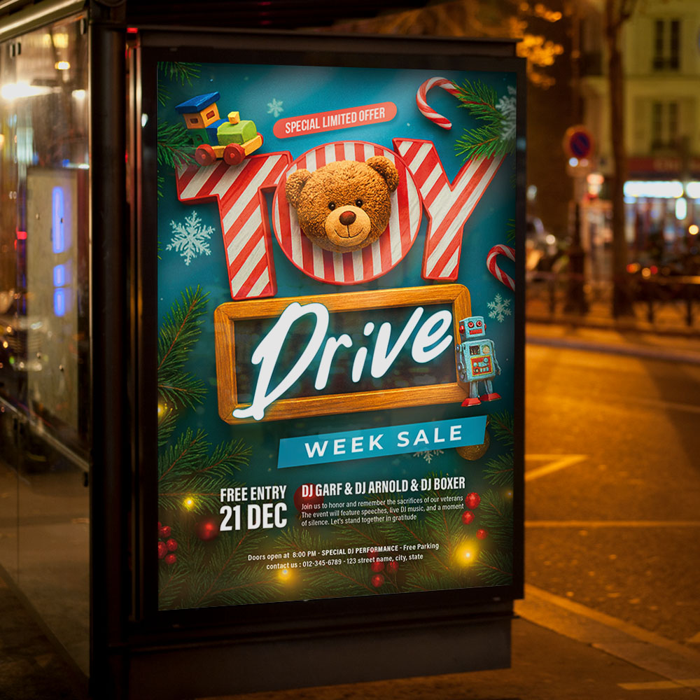 Get Your Toy Drive Sale Flyer Template Today!Start promoting your next sensational “**Toy Drive Sale**” now with our unique and effective flyer template. Download it today and drive sales while making a difference! |