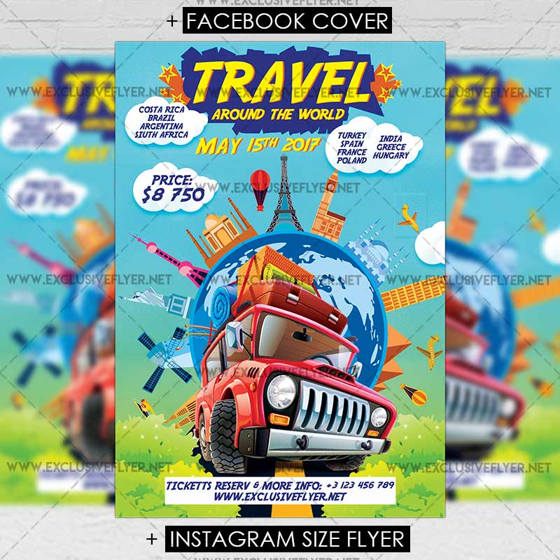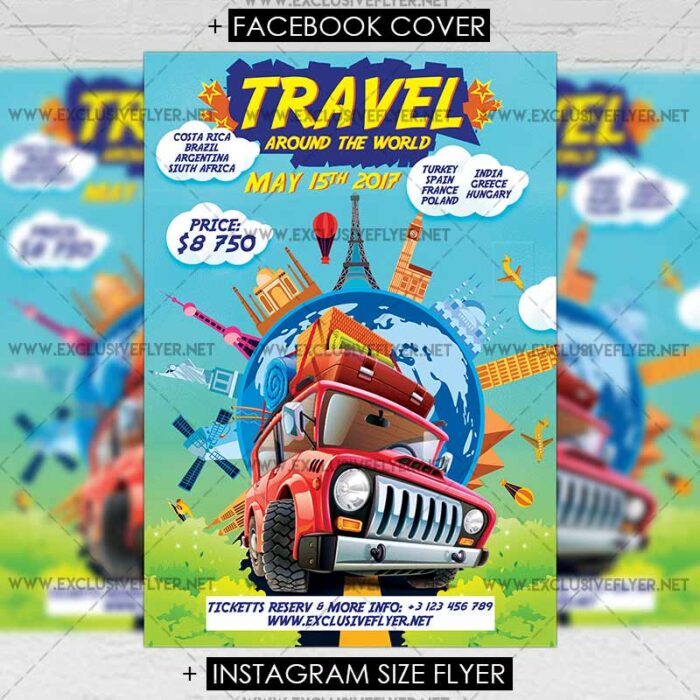 The Travel Around the World is the exclusive Photoshop PSD flyer template designed by ExclusiveFlyer to promote your Travel Around the World. This is a modern, stylish flyer and just be used for a Summer Travel, Family Trip etc.