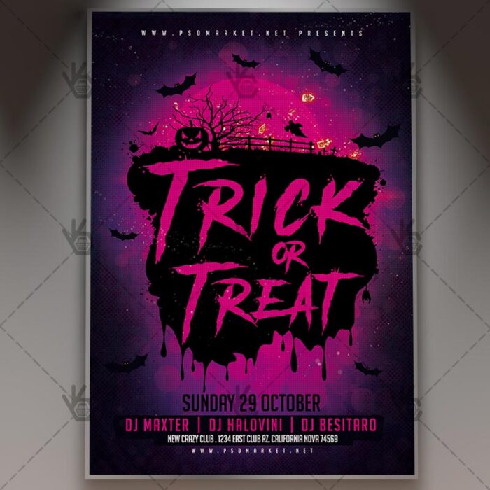 Trick or Treat Night is a simply modern flyer design by PSDmarket Team to be used with Photoshop CS3 and higher. Save your time and use it for business or for your clients! This can be use for Halloween Day, Halloween Fest, Halloween Carnival, Halloween Night, Happy Halloween, Halloween Celebration or Halloween Festival and others.