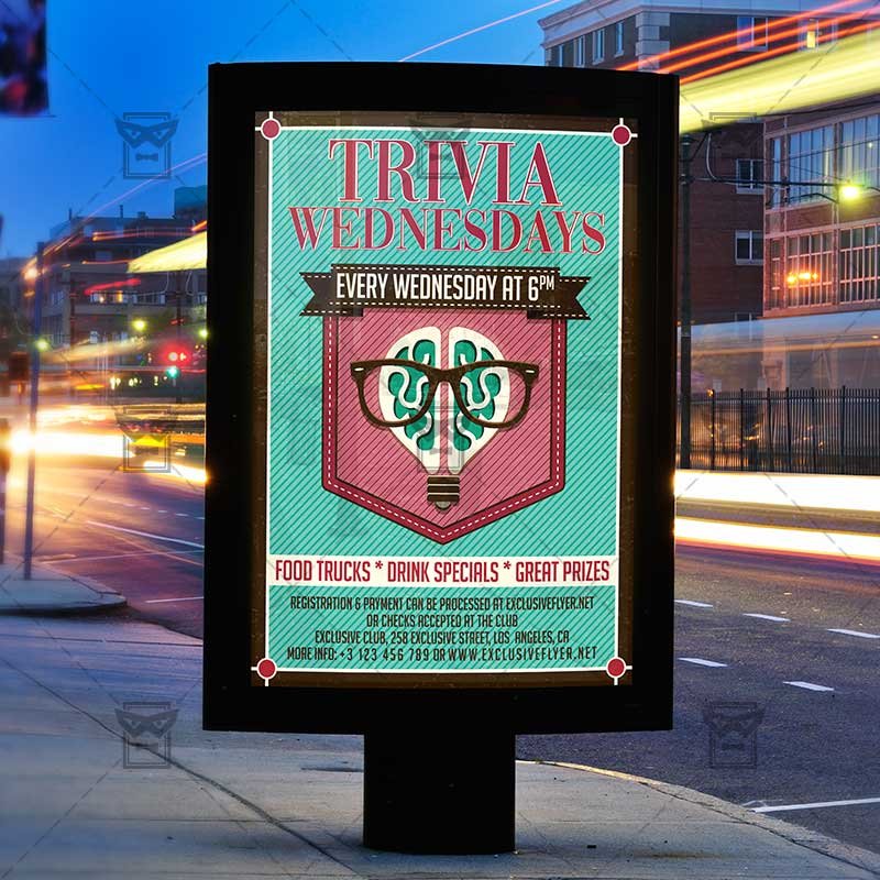 Trivia Wednesdays A5 Flyer Template for Adobe Photoshop