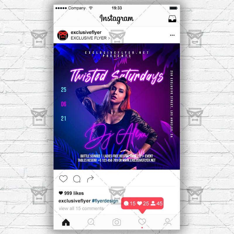 Twisted Saturdays Template an exclusive PSD flyer template for Adobe Photoshop designed by our best graphic designers to facilitate your task in promoting your business. With our readymade Club flyer in psd format you can invite you customers and guest to your event or to the best Party Club, Party Night, Party Online, Live Party, Live Show Night, Online Show. Online Dj Battle, Online Party On in their lives.