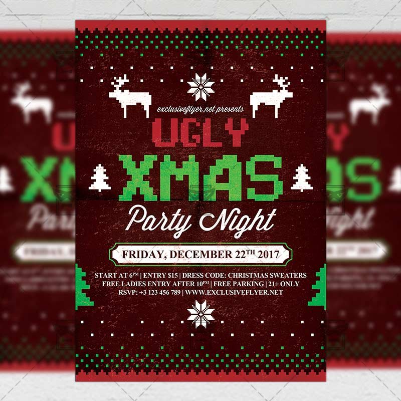 Ugly Xmas A5 Flyer Template for Adobe Photoshop