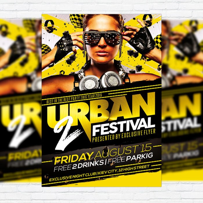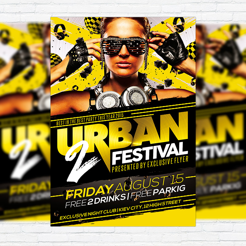 The Urban Festival is the exclusive Photoshop PSD flyer template designed by ExclusiveFlyer to promote your Urban Festival Party. This is a modern, stylish, fresh flyer and just be used for a Urban Party, or Battle Night or Beat Party etc. Dear customers! – you can also: Customize any flyers or Hire Us to create any unique product. Also, you can get unlimited access to all our templates. You can buy 1 month membership, 3 or 6 months membership or even 1 year membership plan and login on site, choose a design, click the button DOWNLOAD TEMPLATE and it’s yours. No hassle, no checkout! When you paid the template, you can find it in your personal account and of course you’ve got a message to your e-mail (maybe in spam) with link to download. Also, you can find all templates, which you buy, in your personal account! All of our flyers have a very good quality (300DPI). And it means that you just need to download one of them and make the necessary modifications such as replace the elements or choose the colors and start to invite your guests! You can order from us design of Banner Ad, Bi-Fold Brochure, Tri-Fold Brochure, Business Card, Logo, One-Sided Flyer, Two-sided Flyer or Postcard. All you need is to checkout and write us all information on our e-mail or skype. (order now). There are a lot of free flyer templates, free business card templates on our site! Also there are a lot of categories of flyers such as club flyers, seasonal flyers, sport flyers and also business flyers. You have a great choise on our site, so good luck! Don’t forget to follow our Facebook community, our page on Twitter, on Pinterest and on Tumblr and leave comments, cause we work for you! PSD is set up in 1275×1875 dimension (4″×6″ with 0,25″ bleed). The PSD file is very well organised, with color coded groups and layers named appropriately. Remember, all stock images of models and other people used only for demonstration all charms of the flyer and don’t included in the download!
