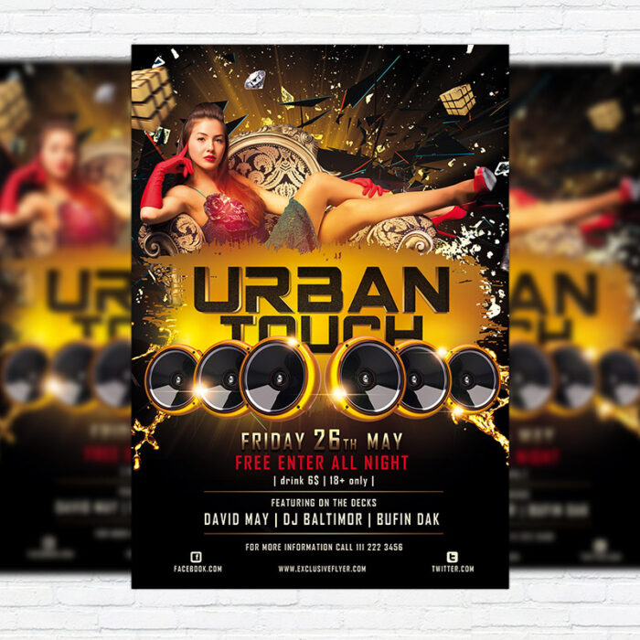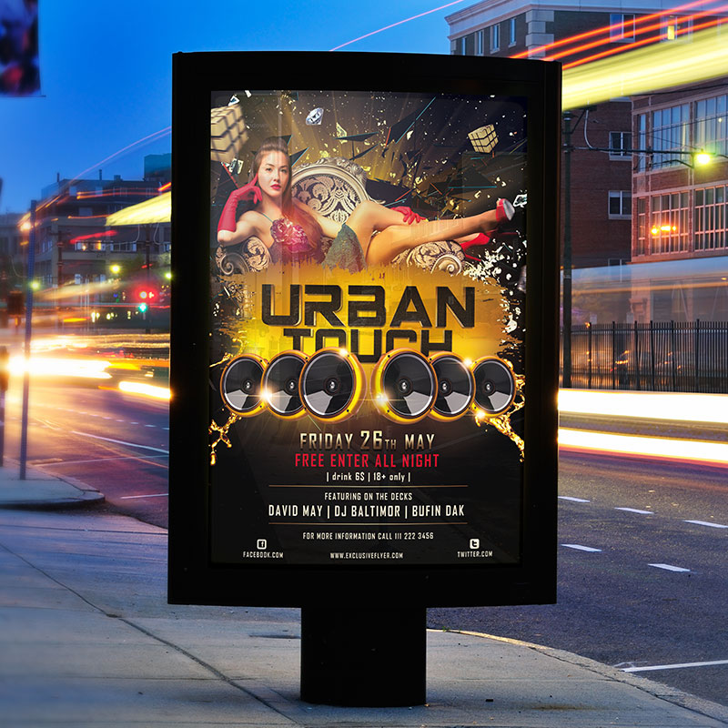 The Urban Touch is the exclusive Photoshop PSD flyer template designed by ExclusiveFlyer to promote your Urban Touch. This is a modern, stylish flyer and just be used for a Urban Touch Night or Urban Touch Party, or Touch Night. Dear customers! – you can also: Customize any flyers or Hire Us to create any unique product. Also, you can get unlimited access to all our templates. You can buy 1 month membership, 3 or 6 months membership or even 1 year membership plan and login on site, choose a design, click the button DOWNLOAD TEMPLATE and it’s yours. No hassle, no checkout! When you paid the template, you can find it in your personal account and of course you’ve got a message to your e-mail (maybe in spam) with link to download. Also, you can find all templates, which you buy, in your personal account! All of our flyers have a very good quality (300DPI). And it means that you just need to download one of them and make the necessary modifications such as replace the elements or choose the colors and start to invite your guests! You can order from us design of Banner Ad, Bi-Fold Brochure, Tri-Fold Brochure, Business Card, Logo, One-Sided Flyer, Two-sided Flyer or Postcard. All you need is to checkout and write us all information on our e-mail or skype. (order now). There are a lot of free flyer templates, free business card templates on our site! Also there are a lot of categories of flyers such as club flyers, seasonal flyers, sport flyers and also business flyers. You have a great choise on our site, so good luck! Don’t forget to follow our Facebook community, our page on Twitter, on Pinterest and on Tumblr and leave comments, cause we work for you! PSD is set up in 1275×1875 dimension (4″×6″ with 0,25″ bleed). The PSD file is very well organised, with color coded groups and layers named appropriately. Remember, all stock images of models and other people used only for demonstration all charms of the flyer and don’t included in the download!