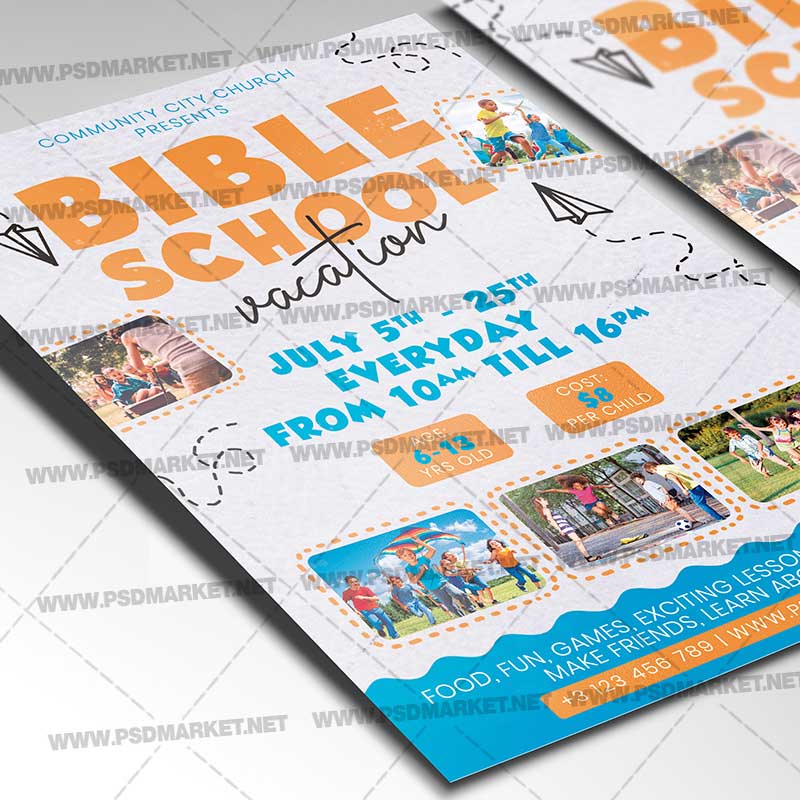 Vacation Bible School Summer Template Flyer PSD is a simply modern flyer design by PSDmarket Team to be used with Photoshop CS3 and higher. Save your time and use it for business or for your clients! This can be use for Church Event, Worship Event, Bible School, Church Summer Camp, Church Kids Camp or Summer Bible School and others.