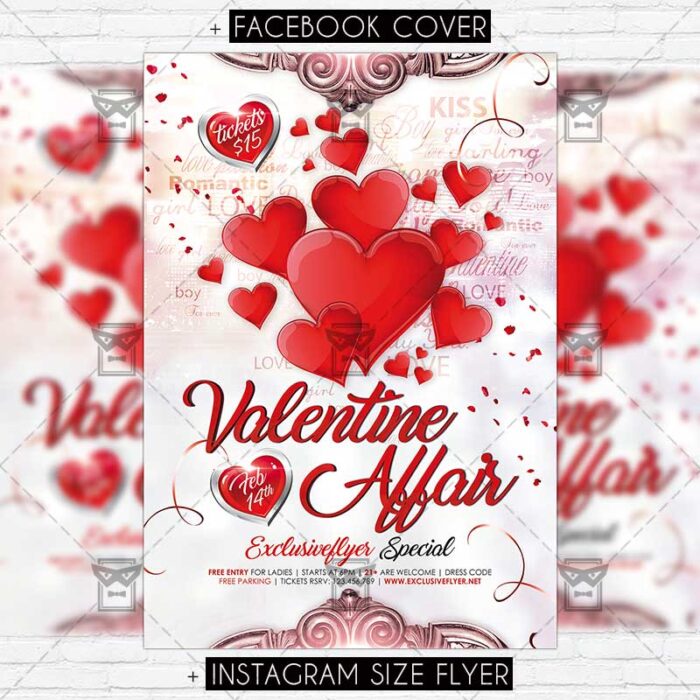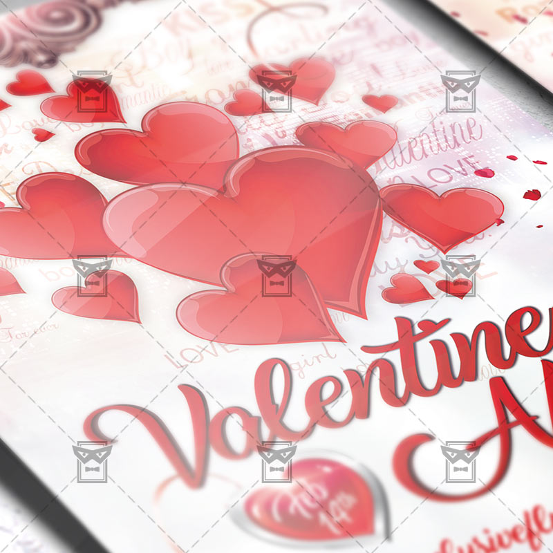 The Valentine Affair is the exclusive Photoshop PSD flyer template designed by ExclusiveFlyer to promote your Valentine Affair. This is a modern, stylish flyer and just be used for a Valentine’s Day Party, Cupid Night, Hearts Party etc. Dear customers! – you can also: Customize any flyers or Hire Us to create any unique product. Also, you can get unlimited access to all our templates. You can buy 1 month membership, 3 or 6 months membership or even 1 year membership plan and login on site, choose a design, click the button DOWNLOAD TEMPLATE and it’s yours. No hassle, no checkout! When you paid the template, you can find it in your personal account and of course you’ve got a message to your e-mail (maybe in spam) with link to download. Also, you can find all templates, which you buy, in your personal account! All of our flyers have a very good quality (300DPI). And it means that you just need to download one of them and make the necessary modifications such as replace the elements or choose the colors and start to invite your guests! You can order from us design of Banner Ad, Bi-Fold Brochure, Tri-Fold Brochure, Business Card, Logo, One-Sided Flyer, Two-sided Flyer or Postcard. All you need is to checkout and write us all information on our e-mail or skype. (order now). There are a lot of free flyer templates, free business card templates on our site! Also there are a lot of categories of flyers such as club flyers, seasonal flyers, sport flyers and also business flyers. You have a great choise on our site, so good luck! Don’t forget to follow our Facebook community, our page on Twitter, on Pinterest and on Tumblr and leave comments, cause we work for you! PSD is set up in 1275×1875 dimension (4” x 6” with 0,25” bleed). The PSD file is very well organised, with color coded groups and layers named appropriately. Remember, all stock images of models and other people used only for demonstration all charms of the flyer and don’t included in the download!