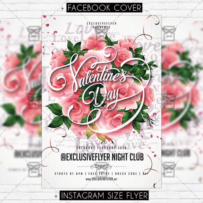 The Valentine Day Celebration is the exclusive Photoshop PSD flyer template designed by ExclusiveFlyer to promote your Valentine Day Celebration. This is a modern, stylish flyer and just be used for a Valentine’s Day Party, Cupid Night, Hearts Party etc. Dear customers! – you can also: Customize any flyers or Hire Us to create any unique product. Also, you can get unlimited access to all our templates. You can buy 1 month membership, 3 or 6 months membership or even 1 year membership plan and login on site, choose a design, click the button DOWNLOAD TEMPLATE and it’s yours. No hassle, no checkout! When you paid the template, you can find it in your personal account and of course you’ve got a message to your e-mail (maybe in spam) with link to download. Also, you can find all templates, which you buy, in your personal account! All of our flyers have a very good quality (300DPI). And it means that you just need to download one of them and make the necessary modifications such as replace the elements or choose the colors and start to invite your guests! You can order from us design of Banner Ad, Bi-Fold Brochure, Tri-Fold Brochure, Business Card, Logo, One-Sided Flyer, Two-sided Flyer or Postcard. All you need is to checkout and write us all information on our e-mail or skype. (order now). There are a lot of free flyer templates, free business card templates on our site! Also there are a lot of categories of flyers such as club flyers, seasonal flyers, sport flyers and also business flyers. You have a great choise on our site, so good luck! Don’t forget to follow our Facebook community, our page on Twitter, on Pinterest and on Tumblr and leave comments, cause we work for you! PSD is set up in 1275×1875 dimension (4” x 6” with 0,25” bleed). The PSD file is very well organised, with color coded groups and layers named appropriately. Remember, all stock images of models and other people used only for demonstration all charms of the flyer and don’t included in the download!