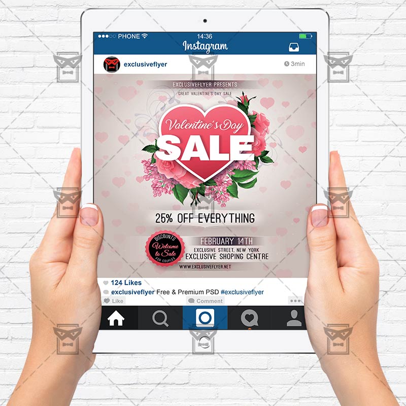 The Valentine Day Sale is the exclusive Photoshop PSD flyer template designed by ExclusiveFlyer to promote your Valentine Day Sale. This is a modern, stylish flyer and just be used for a Valentine’s Day Party, Cupid Night, Hearts Party etc. Dear customers! – you can also: Customize any flyers or Hire Us to create any unique product. Also, you can get unlimited access to all our templates. You can buy 1 month membership, 3 or 6 months membership or even 1 year membership plan and login on site, choose a design, click the button DOWNLOAD TEMPLATE and it’s yours. No hassle, no checkout! When you paid the template, you can find it in your personal account and of course you’ve got a message to your e-mail (maybe in spam) with link to download. Also, you can find all templates, which you buy, in your personal account! All of our flyers have a very good quality (300DPI). And it means that you just need to download one of them and make the necessary modifications such as replace the elements or choose the colors and start to invite your guests! You can order from us design of Banner Ad, Bi-Fold Brochure, Tri-Fold Brochure, Business Card, Logo, One-Sided Flyer, Two-sided Flyer or Postcard. All you need is to checkout and write us all information on our e-mail or skype. (order now). There are a lot of free flyer templates, free business card templates on our site! Also there are a lot of categories of flyers such as club flyers, seasonal flyers, sport flyers and also business flyers. You have a great choise on our site, so good luck! Don’t forget to follow our Facebook community, our page on Twitter, on Pinterest and on Tumblr and leave comments, cause we work for you! PSD is set up in 1275×1875 dimension (4” x 6” with 0,25” bleed). The PSD file is very well organised, with color coded groups and layers named appropriately. Remember, all stock images of models and other people used only for demonstration all charms of the flyer and don’t included in the download!