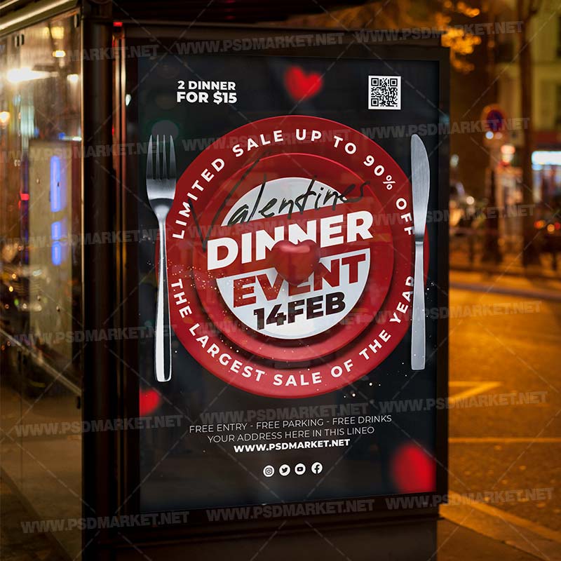 Download Valentines Dinner Card Printable Template Flyer PSD