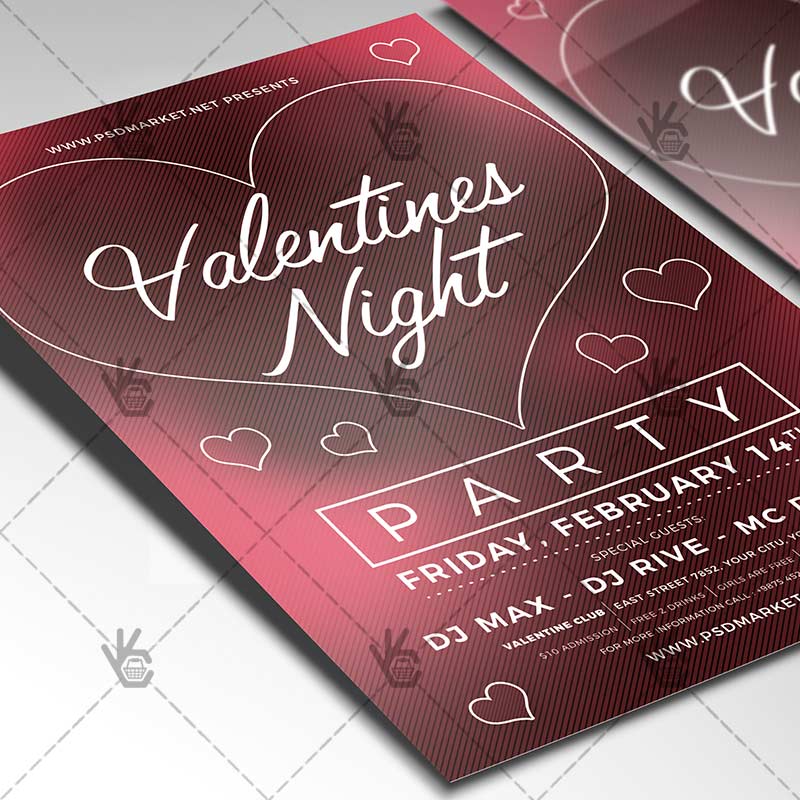 Valentines Night Flyer is a simply modern flyer design by PSDmarket Team to be used with Photoshop CS3 and higher. Save your time and use it for business or for your clients! This can be use for Valentines Night, Valentine Night, Valentine Party, Valentines Day, Valentine Day, Valentines Festival, Valentines Party, Valentines Celebration, Valentines Night, Valentines Event and others.