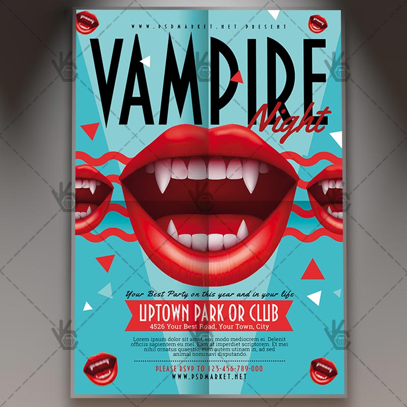 Vampire Night is a simply modern flyer design by PSDmarket Team to be used with Photoshop CS3 and higher. Save your time and use it for business or for your clients! This can be use for Halloween Day, Halloween Fest, Halloween Carnival, Halloween Night, Happy Halloween, Halloween Celebration or Halloween Festival and others.